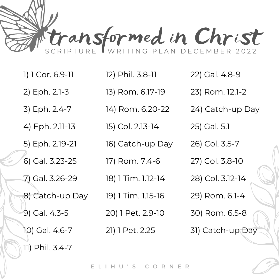 3 thoughts on “Transformed in Christ: Scripture Writing Plan December 2022