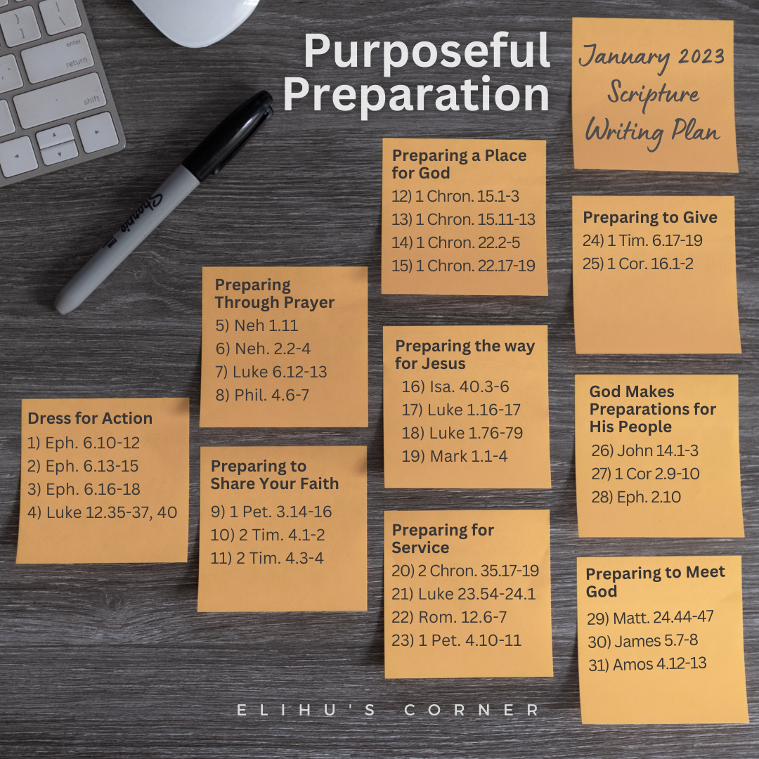 As we enter another new year, let’s take time to focus on the reliability of God in this unreliable world. This month, we will write through passages about God being our refuge. If you have a paper planner, you could add your favorite passages in the margin of each upcoming month to remind you to stay in the shelter of His refuge each day. I hope you will join us as we write down these scriptures this month. As usual, I try to reflect on each day’s passage on Facebook and Instagram (@elihuscorner). Let’s be intentional about choosing the Lord not only when we need help, but also in times of great joy. May he always be our refuge and dwelling place, as Moses wrote:
