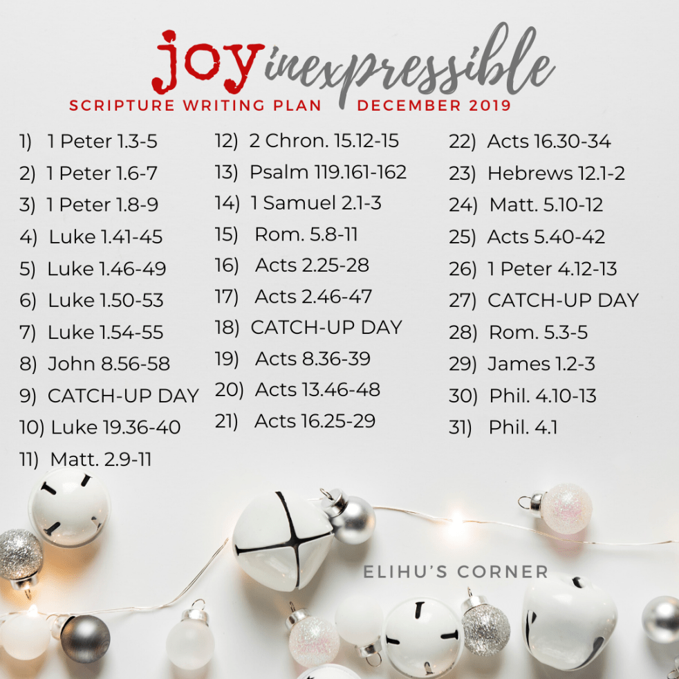 Joy Inexpressible: December 2019 Scripture Writing Plan