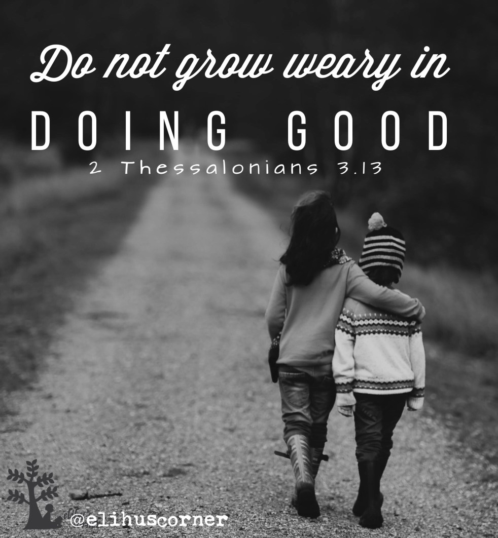“As for you, brothers, do not grow weary in doing good.” 2 Thessalonians 3:13 ESV Welcome to the halfway point of our #encourage marathon! (If you missed yesterday's post, you can read it here.) **Please note, there is a typo on your PDF for today's passage it should be 2 Thessalonians 3.13 not 5.13** Someone out… Continue reading Keep on keepin’ on. (Day #13 of the #encourage marathon)